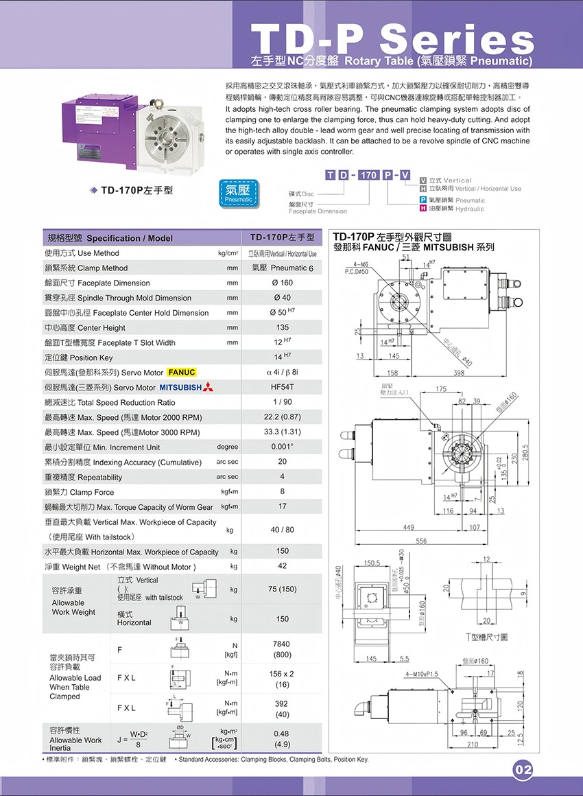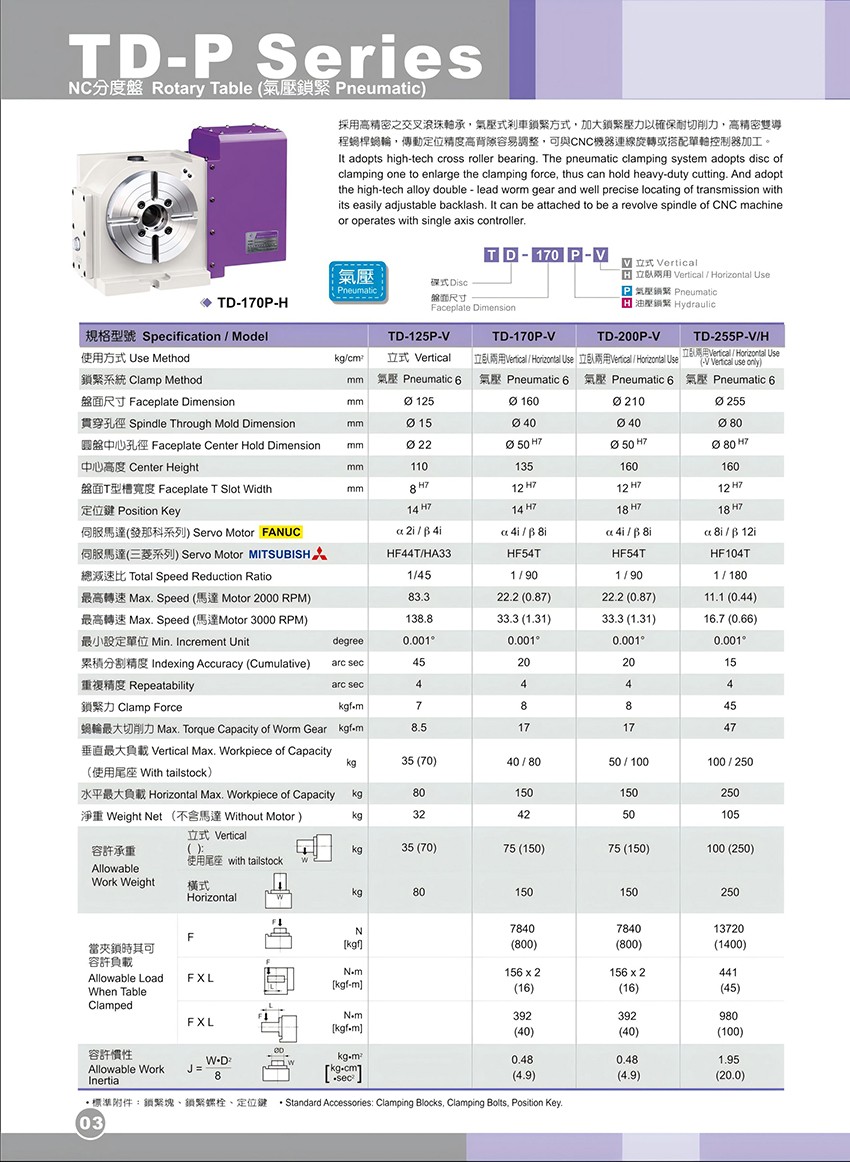 探用高精密之交叉滚珠轴承,气压式刹车锁紧方式,加大锁紧压力以确保耐切削力,高精密双导程蜗杆蜗轮,传动定位精度高背隙容易调整,可与CNC机器连线旋转或搭配单轴控制器加工。