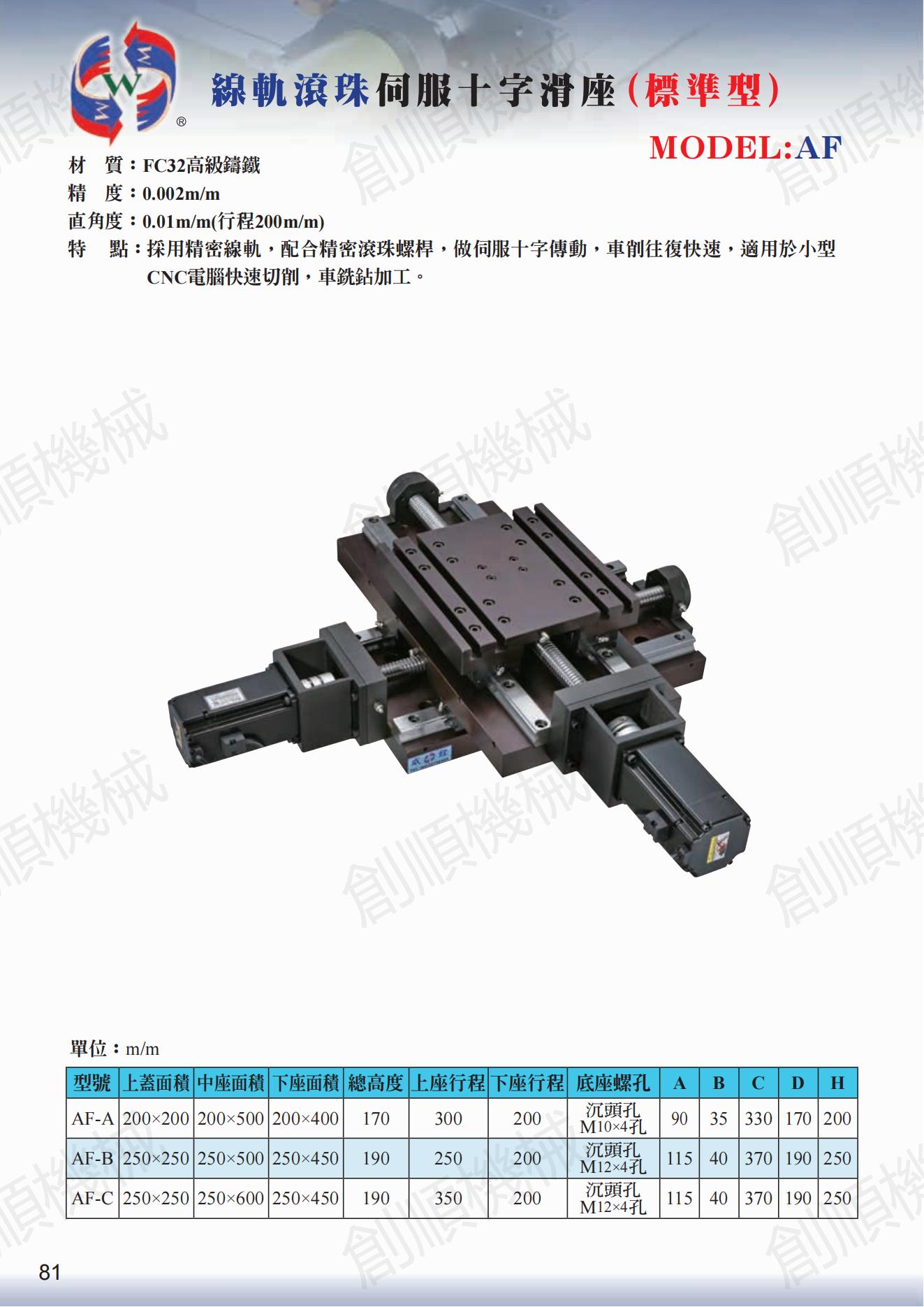 线轨滚珠伺服十字滑座(标淮型) AF