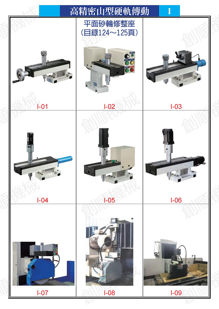 山型电控傅动(精密平面砂轮修整座),山型手摇(精密平面砂轮修整座),高精密山型硬轨传动,山型油压(精密平面砂轮修整座),山型传动伺服自动进刀(精密平面砂轮修整座)
