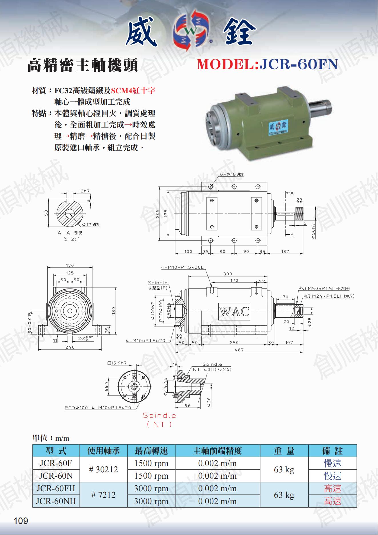 高精密主轴机头 JCR-60FN